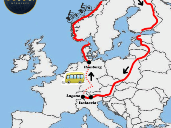 The trip started on the 11th of May from Giorgio’s hometown. After 3 days of cycling they got to Lugano (Switzerland) where they jumped on a bus to München from where they continued by train to reach Hamburg (Germany).