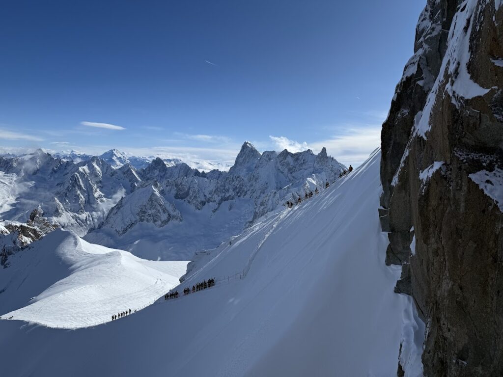 This means that as the slopes close, and everyone makes their way down to the town, the mountains become bathed in an orange-gold glow. There is something almost choreographed about the crowd, all turning and overtaking in a nonchalant, happy but tired waltz down the paths. Like the backing vocals of “I’m not in Love” provide a sense of something greater to the music, the glimpses of afternoon light on this run have a magic to them that is hard to find even in the spectacular sunset views from Ruinettes or at Le Rouge.
